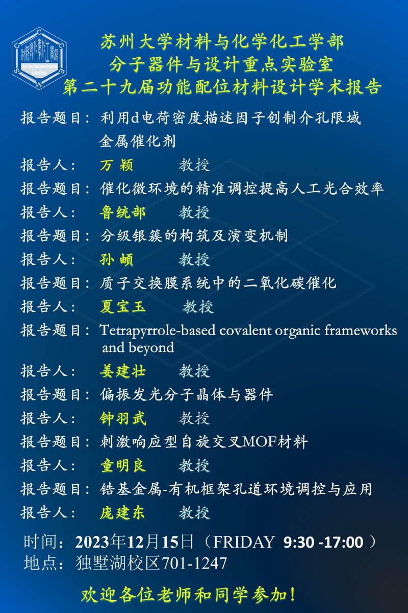 第二十九届功能配位材料设计学术报告