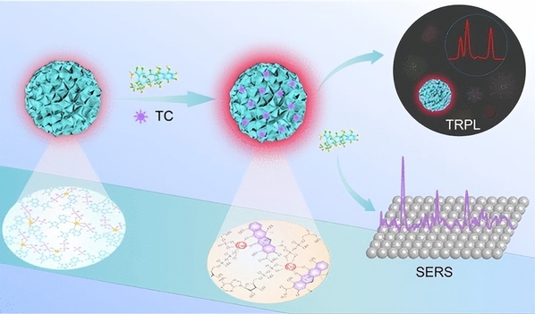 Abstract: Lanthanide coordination nanoparticles (Ln-CNPs) have shown significant potential in optical biosensing. However, the conventional self-assembly of lanthanides and ligands generally produces large cross-linked coordination networks with uncontrollable morphologies and poor dispersibility. In this work, we developed a facile coordination-driven self-assembly strategy for preparing Ln-CNPs with tunable properties, demonstrating their exceptional utility in the dual-mode time-resolved photoluminescence (TRPL)/surface-enhanced Raman spectroscopy (SERS) detection of analytes in complex matrices. Specifically, a series of Ln-CNPs were prepared by the coordination-driven self-assembly of adenosine diphosphate (ADP) with Ln3+. The resulting Ln-CNPs exhibited a controllable morphology, excellent monodispersity, long-lived luminescence, and other functionalities. Notably, the luminescence of ADP-Eu and ADP-Tb CNPs remained detectable even at a delay time of 1 ms, making them ideal for TRPL biosensing; while ADP-Gd CNPs showed potential for magnetic resonance imaging. As a proof-of-concept for optical biosensing applications, we engineered a TRPL/SERS dual-mode platform leveraging the specific response of ADP-Eu CNPs to tetracycline (TC). TC binding to ADP-Eu CNPs induced up to 13-fold TRPL enhancement through the antenna effect, while unbound TC molecules enabled 10–9 M-level SERS detection via plasmonic coupling. Quantitative cross-verification between TRPL and SERS significantly enhanced the determination accuracy. This dual-mode platform achieved 97.64–108.90% recoveries for TC detection in serum samples with <3.2% RSD. Our methodology establishes a generalizable paradigm for engineering multifunctional Ln-CNPs and further opens exciting avenues for the accurate detection of analytes in complex biological systems.