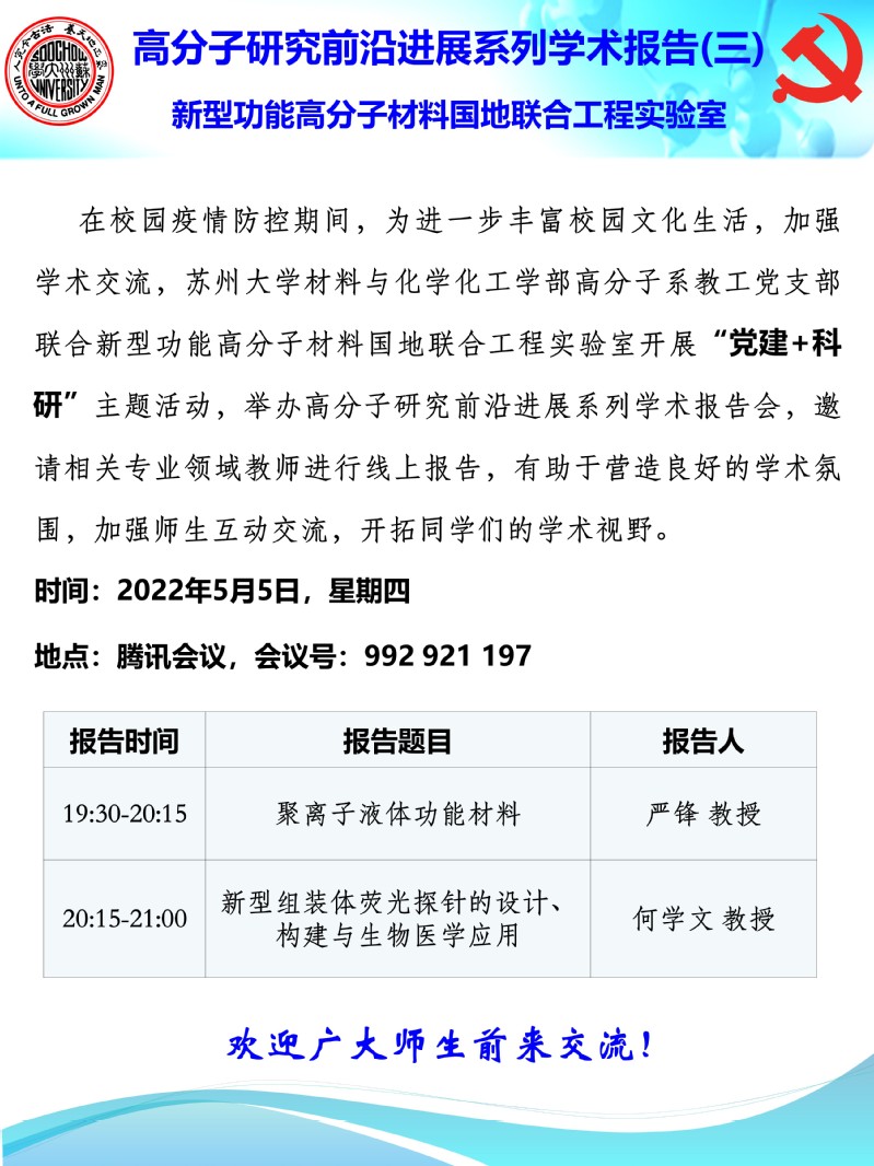高分子研究前沿进展系列学术报告(三)
