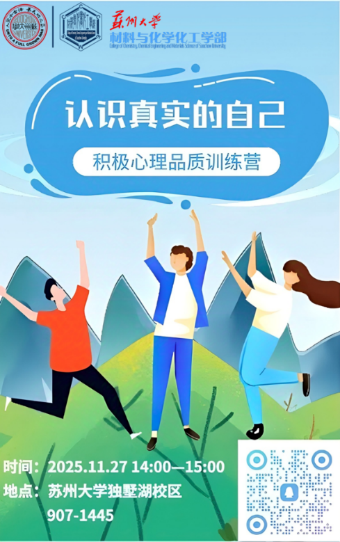 材料与化学化工学部联合 苏州市姑苏区心盟心理社工发展服务中心,带来一场专注于“认识真实的自己”的沉浸式团体辅导活动,为你提供一面安全、科学、温暖的“镜子”。