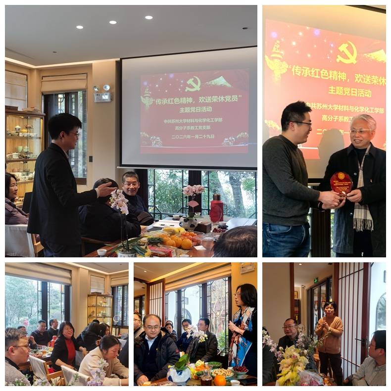 2026年1月29日,材料与化学化工学部党委高分子系教工党支部开展“传承红色精神,欢送荣休党员”主题党日活动。