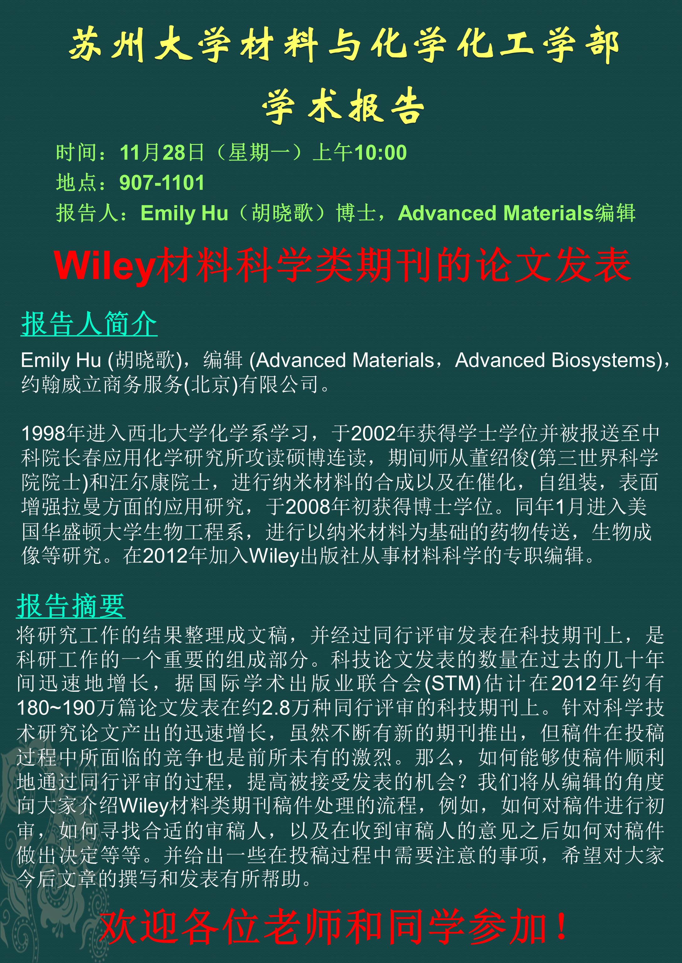 Wiley材料科学类期刊的论文发表