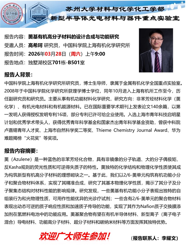 奠基有机高分子材料的设计合成与功能研究