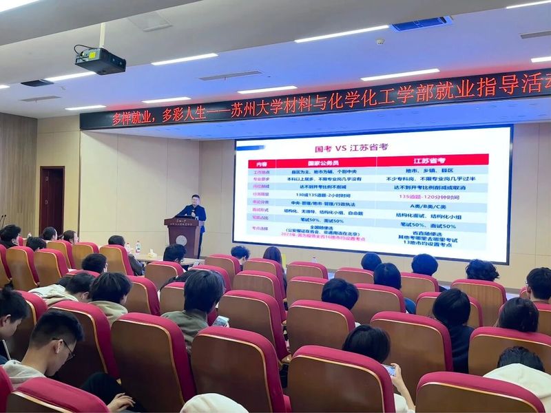 此次就业指导活动的举办,精准对接了同学们的就业需求,从公考、教师编两大热门方向为学子提供了专业、实用的就业指导,有效拓宽了大家的就业思路。未来,苏州大学材料与化学化工学部与艺术学院将继续秉持服务学子的理念,推出更多优质的就业指导活动,多措并举为学生职业发展提供坚实保障,助力同学们在就业道路上稳步前行,以青春之姿奔赴理想前程!