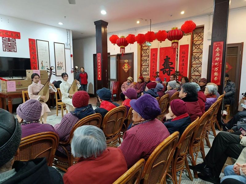 此外,志愿者们为老人表演苏州传统节目-评弹,载歌载舞的同时将青春的气息播撒开去,丰富了老人们的精神生活。