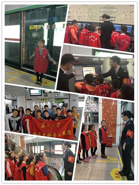 11时35分,青年志愿者协会的成员们在苏州大学独墅湖校区一期北门集合,乘坐公交车前往星湖街地铁站。志愿者们与小朋友及其家长汇合后,兵分两路,分别前往时代广场站和星湖街站开展活动。到达目的地后,地铁站负责人首先说明参观过程中需要注意的问题。随后,负责人带领志愿者们参观地铁站并沿途介绍地铁站各个岗位的工作职能以及安全方面的注意事项。小朋友们认真地聆听着负责人的讲解并不时提出自己感兴趣的问题。小朋友们充满童真的话语,天马行空的思维给活动带来许多欢乐,家长们也在一旁拿起手机,随时拍下自己孩子参观过程中的精彩瞬间。参观结束后,小朋友在家长的陪同下在售票处,候车大厅,出站口进行岗位体验,亲身感受地铁站的日常工作状态。14时整,小朋友们及其家长与地铁站工作人员合影留念,本次活动圆满结束。