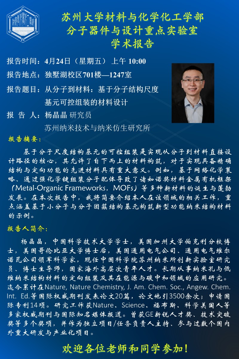 从分子到材料:基于分子结构尺度基元可控组装的材料设计