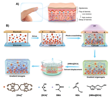 Electric-Field-Induced Gradient Ionogels for Highly Sensitive, Broad-Range-Response, and Freeze/Heat-Resistant Ionic Fingers