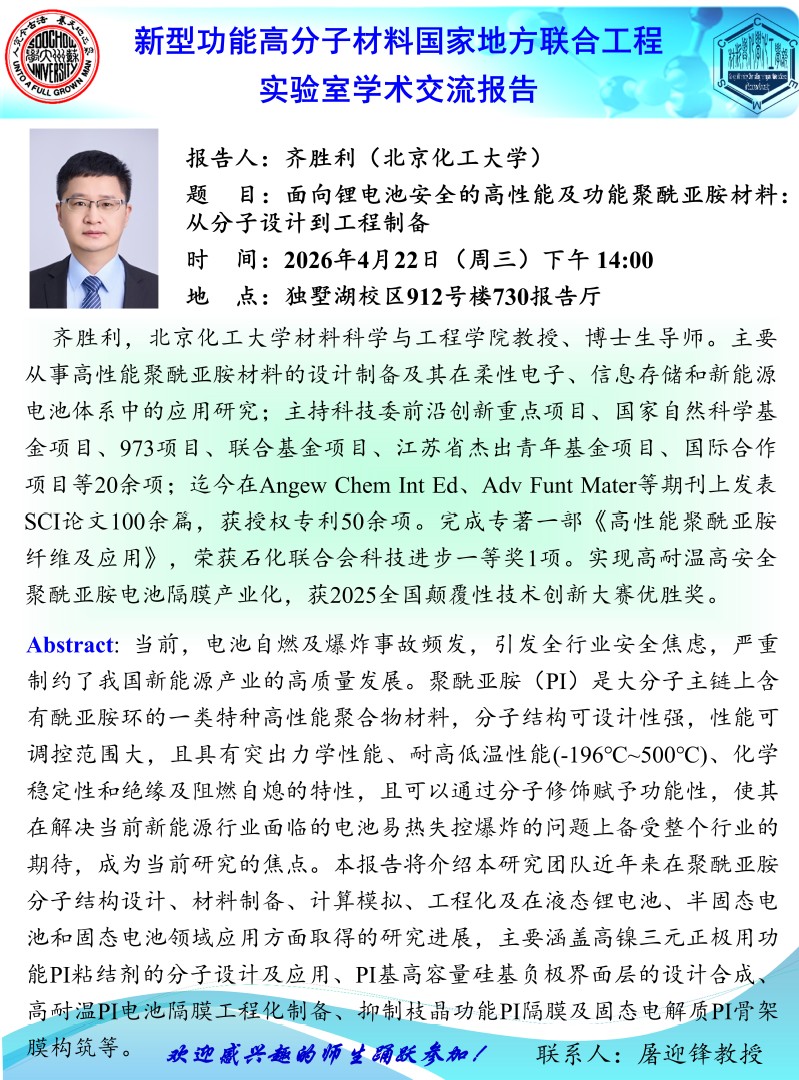 面向锂电池安全的高性能及功能聚酰亚胺材料: 从分子设计到工程制备
