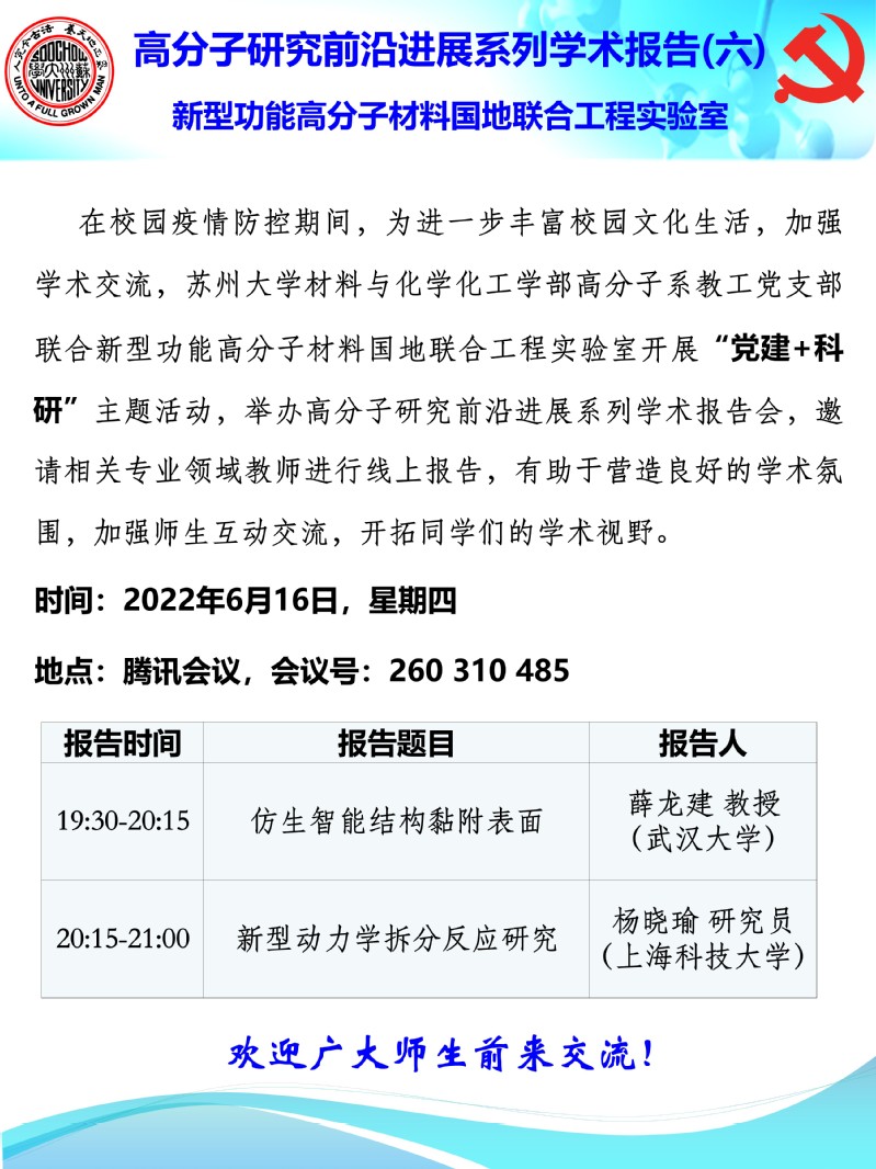 高分子研究前沿进展系列学术报告(六)