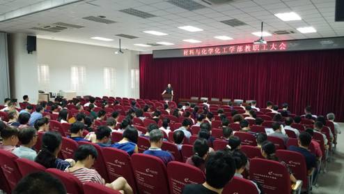 2018年9月5日下午1点30分,材料与化学化工学部教职工大会在907号楼1101室举行,全体教职工参加了会议。