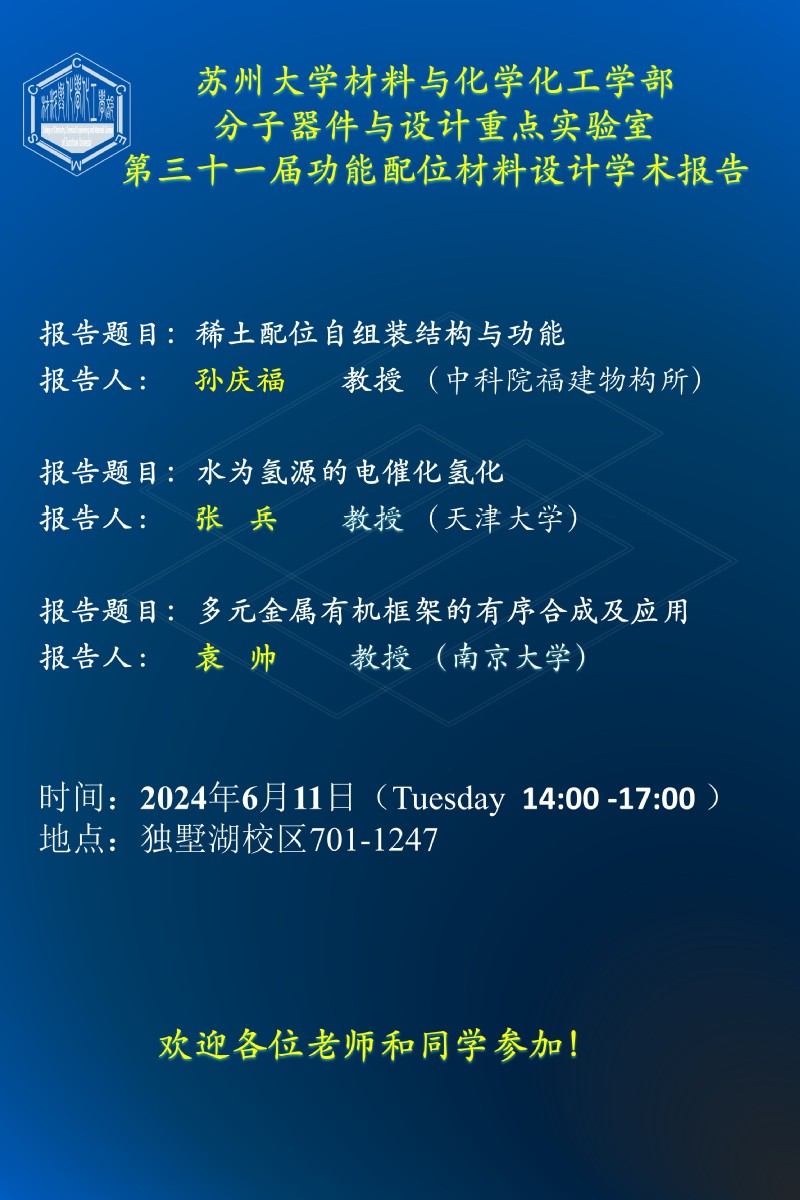 第三十一届功能配位材料设计学术报告