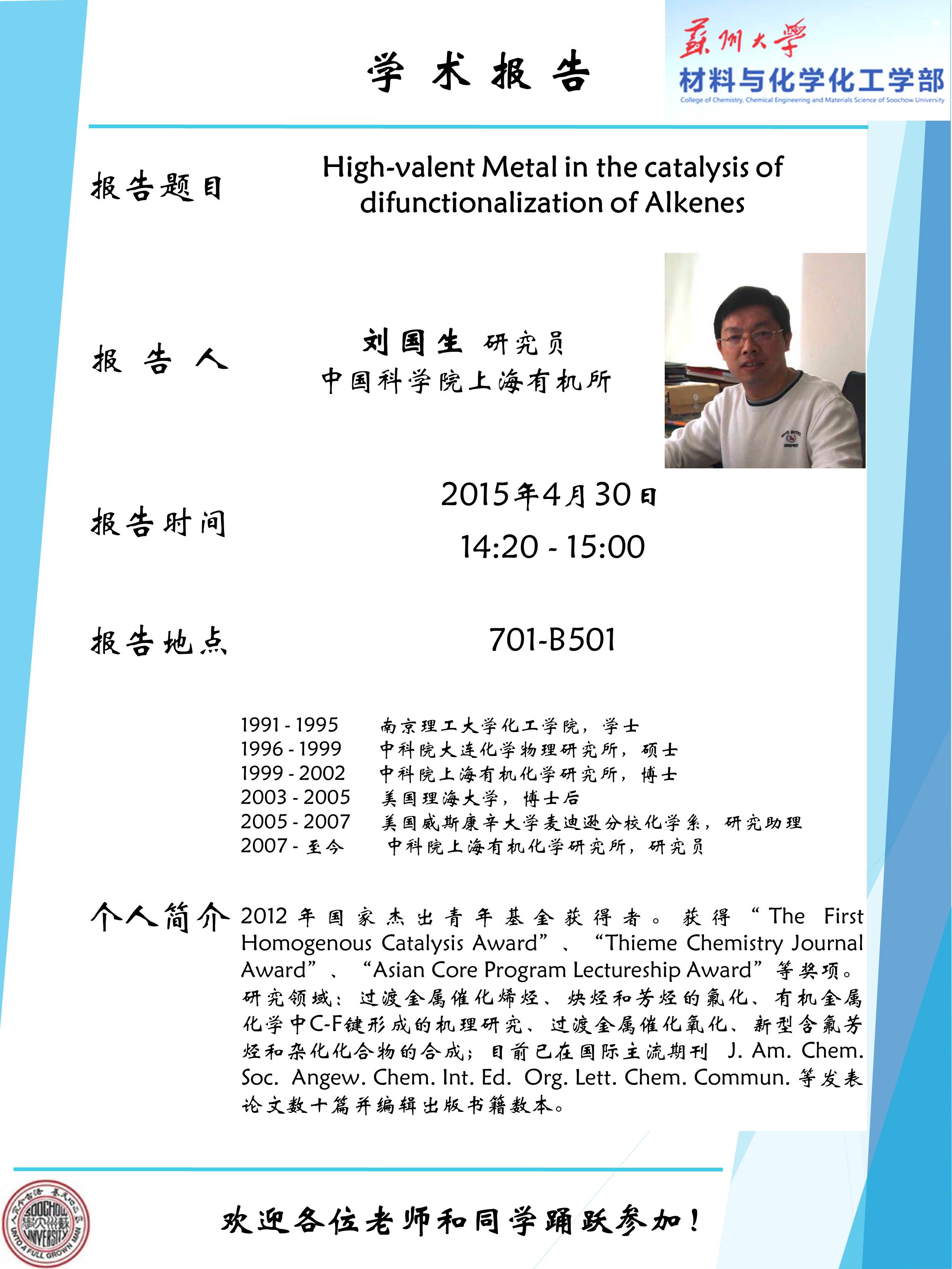 Welcome to College of Chemistry, Chemical Engineering and Materials Science of Soochow University