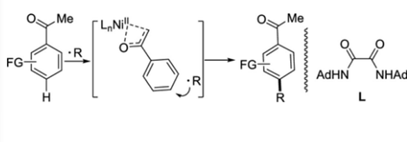 A direct, para-selective, radical-based alkylation of aromatic ketones with alkanes has been developed using a nickel catalyst with oxamide as the ligand. Acetophenones bearing electron-withdrawing substituents were functionalized directly with simple alkanes with high para-selectivity while acetophenones with electron-donating groups were mainly para-functionalized. A mechanistic study indicated that C–H bond activation of the aromatic ring may be the rate-determining step of the reaction.