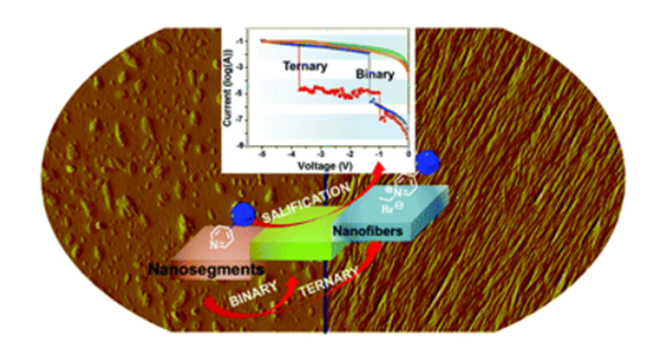 Deriving highly oriented organic nanofibers and ternary memory performance via salificationinduced effects
