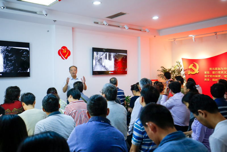 材化部党委书记李翔主持活动,活动共分三个部分:参观英烈生平事迹展览和观看教育片、教工支部书记暑期专题培训分享和重温入党誓词。李翔书记希望教工党员们通过了解和学习身边党员英烈的光辉事迹,不忘初心、牢记使命、励志前行。