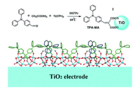 Titanium oxo clusters (TOCs) anchored with photoactive triphenylamine (TPA) dyes are reported for the first time. The TiO2 electrodes modified with the TPA dye pre-anchored TOCs showed excellent photocurrent response properties.