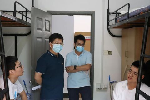 炎炎夏日,徐信和崔超华老师尤其关心学生是否可以适应宿舍的硬件条件,与学生们进行了亲切交谈。在鼓励同学们适应环境、适应大学生活的同时,也表达了学部对同学们的关心。