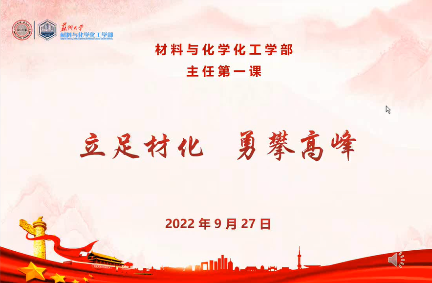 为了使22级新生更好地适应大学的生活,为今后的学习奠定昂扬的基调,2022年9月27日上午9:00,苏州大学材料与化学化工学部于云中苏大线上会议室开展了“立足材化,勇攀高峰——2022年新生入学教育之主任第一课”。本次讲座由材料与化学化工学部主任张正彪主讲。2022级本科生及研究生参加了本次讲座。