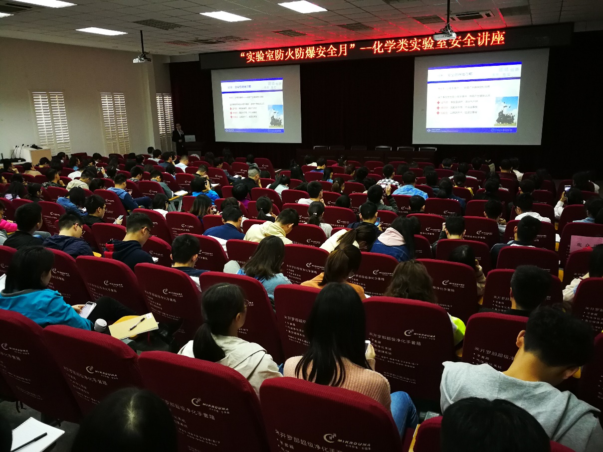 2019年5月8日下午,在独墅湖校区907号楼1101室学术报告厅,材料与化学化工学部邀请了华东理工大学实验室与装备处副处长、安全环保办公室主任徐宏勇博士和上海化工研究院生产处副处长郑华强高级工程师两位安全专家进行了主题分别为“建立安全文化 唤起安全意识”及“实验室危化品管理及应急处置”的化学类实验室安全培训讲座。材料与化学化工学部各实验室的安全责任人、学生安全员及相关兄弟学院师生共200多人共同聆听了两位专家的讲座。讲座内容丰富、讲解专业而精彩,让师生们得到了一次良好的实验室防火防爆安全教育与培训。