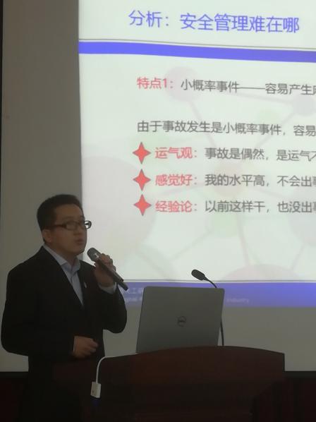根据海因里希安全法则,在事故因果连锁过程的五个因素中,“人的不安全行为或物的不安全状态”是造成事故的直接原因。针对人的“不安全行为”,徐宏勇博士旁征博引,用国内外大量案例并结合分析提前现场勘察我学部重点部位实验室的所获得的相关信息,阐述了建立安全文化,唤起每一位师生安全意识的重要性和方法。