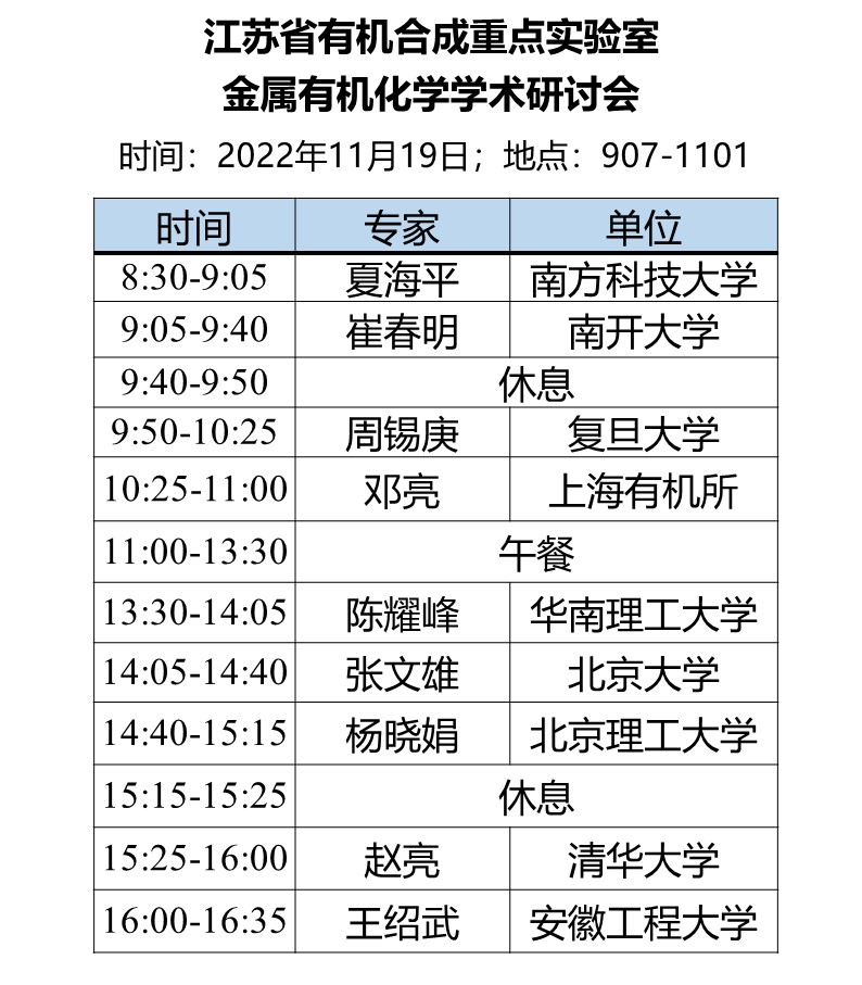 江苏省有机合成重点实验室金属有机化学学术研讨会