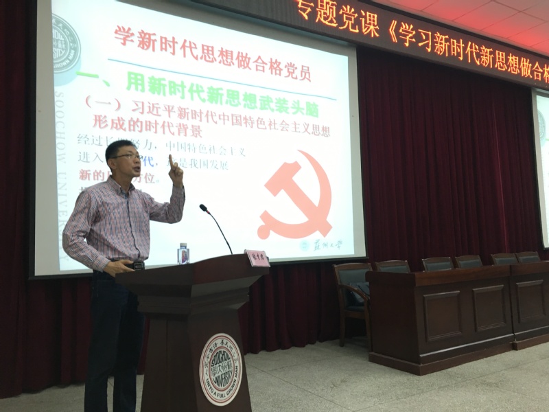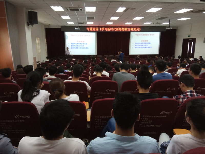 2019年5月22日13时30分,材料与化学化工学部分党校邀请了马克思主义学院党委书记张才君教授在独墅湖校区907幢1101室举办了题为《学新时代思想做合格党员》 的专题党课,为独墅湖校区的党校学员及材料与化学化工学部全体学生党员近300人做了精彩的报告。此次专题党课由学部党委书记李翔主持,学部本科生辅导员、研究生秘书及党校读书会成员也到场聆听了讲座。