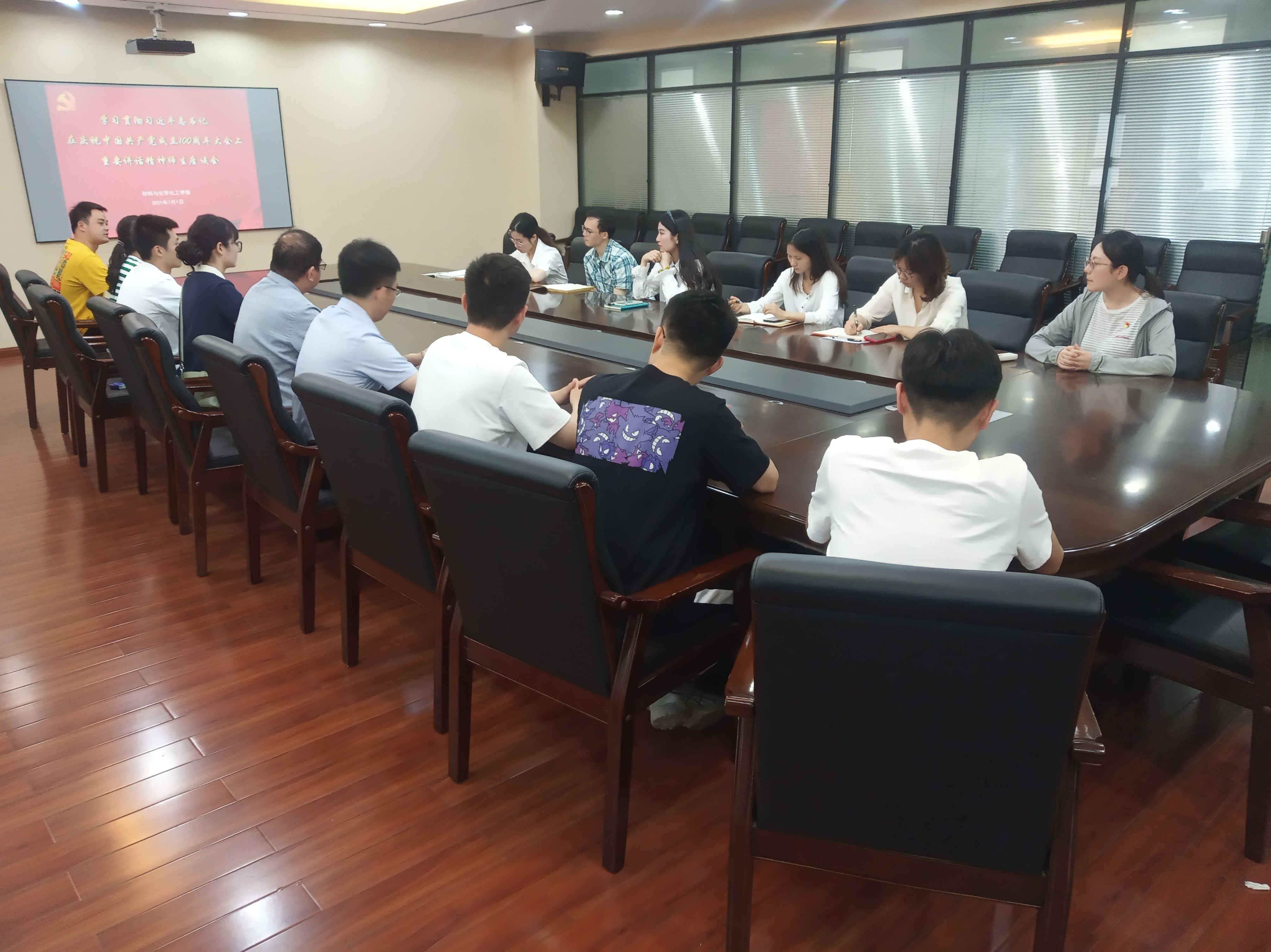 庆祝中国共产党成立100周年大会直播结束后,材料与化学化工学部物化及分析化学教工支部书记徐敏敏、高分子系教工支部书记何金林、研究生辅导员、本科生辅导员及部分学生党员代表召开师生座谈会,深入学习贯彻习近平总书记在庆祝中国共产党成立100周年大会上重要讲话精神。