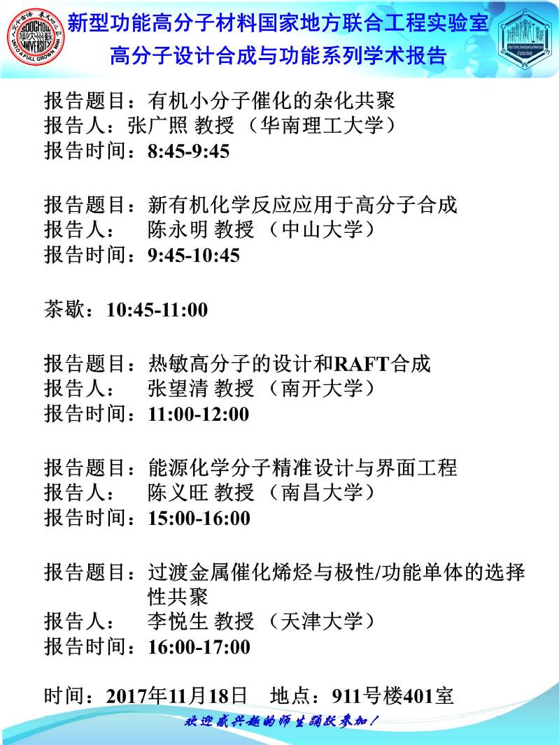 新型功能高分子材料国家地方联合工程实验室系列学术报告